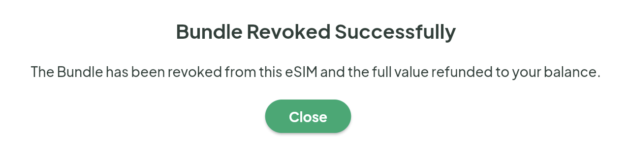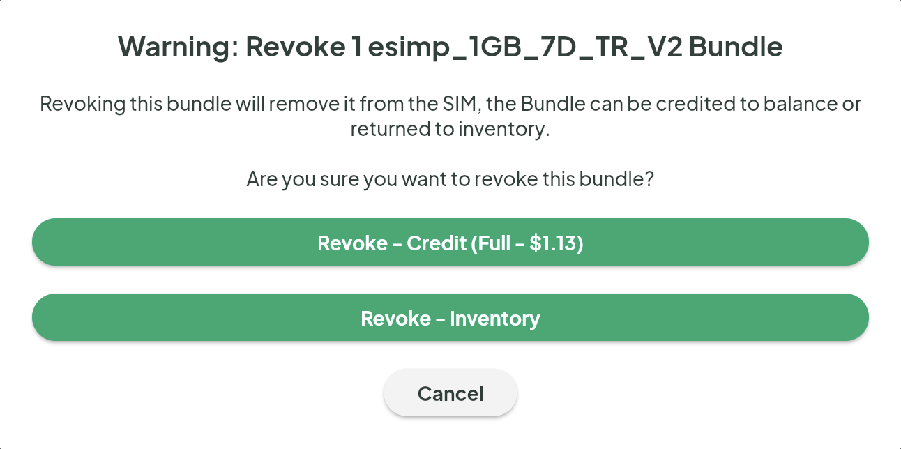 It is possible to revoke a bundle from an existing eSIM to inventory or credit by using the Portal (Option 1) or by using the API (Option 2).