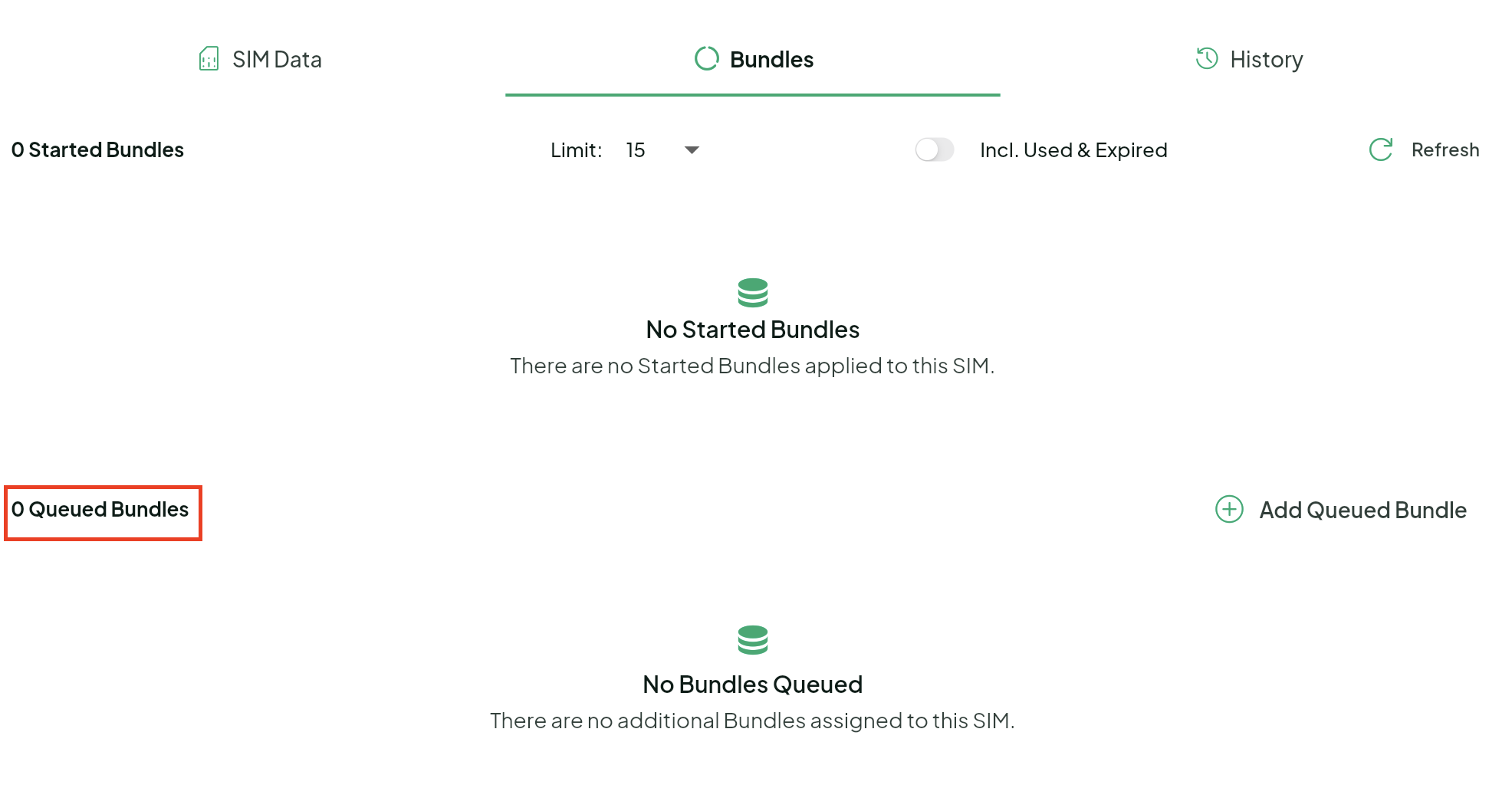 7. You will notice that the 1GB, 7 Day, Turkey bundle has now been remove from the queued bundles section.