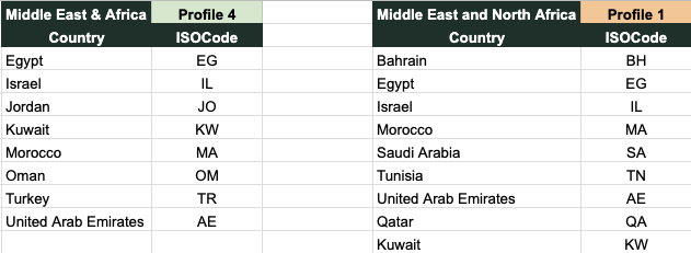 For example if your customer was in Egypt with a Middle East & Africa bundle you would need to check coverage for Profile 4. Whereas if they were in Egypt using a Middle Easy and North Africa bundle you would check coverage for Profile 1.