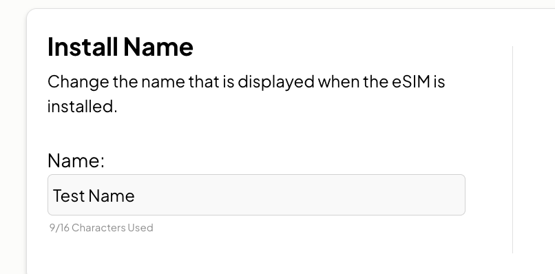 By default your Install Name is eSIM Go.